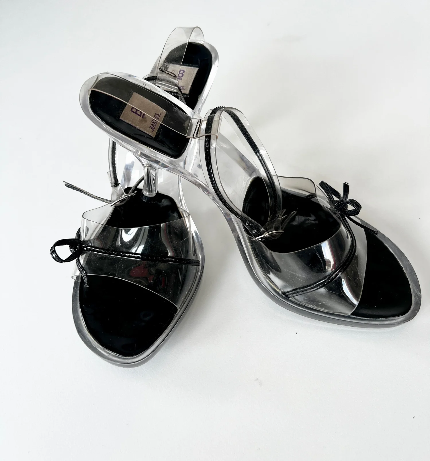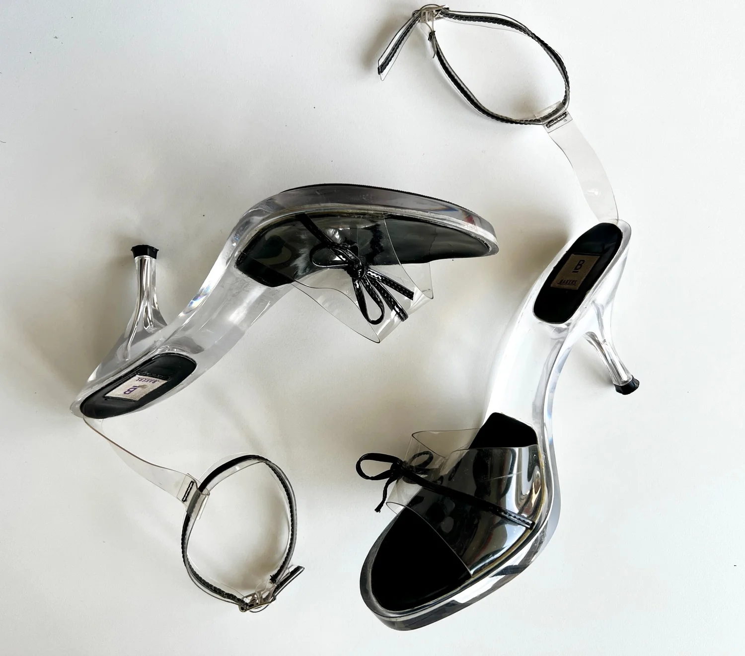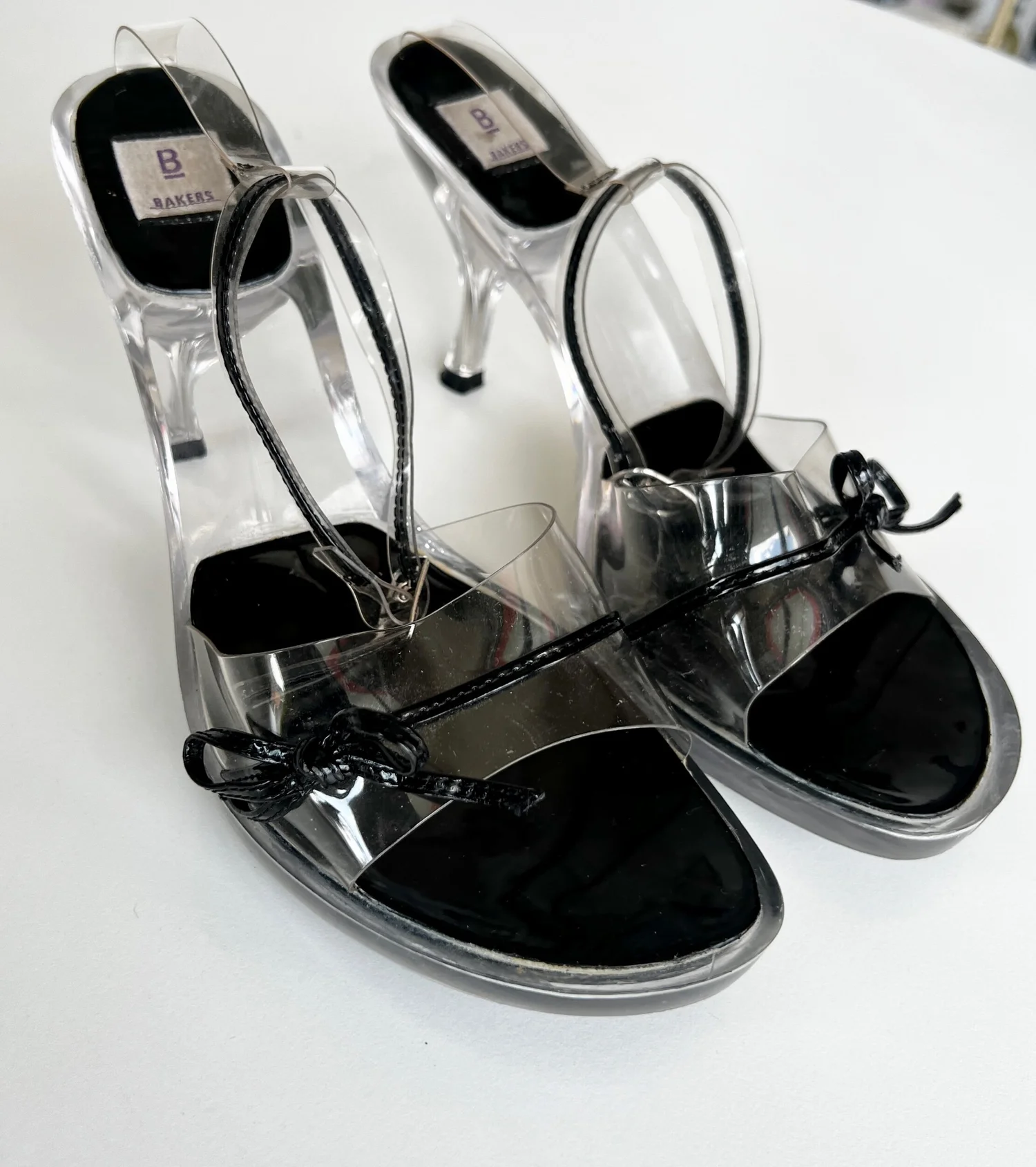 Clear acrylic platform heels with stylish accent bow ties. Stylish yet comfortable and can pair back to any outfit!